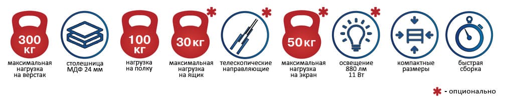 Верстак Master M100.MF1/MF1.002Артикул: 15813-1Артикул: 15813-2Артикул: 15813-3Артикул: 15813-4Артикул: 15813-5Варианты: без экрана, без освещенияодинарный экран, без освещенияодинарный экран, светодиодное освещениедвойной экран, без освещениядвойной экран, светодиодное освещениеОсновной склад: Нет в наличииСклад Новосибирск: Нет в наличииОсновной склад: Нет в наличииСклад Новосибирск: Нет в наличииОсновной склад: Нет в наличииСклад Новосибирск: Нет в наличииОсновной склад: Нет в наличииСклад Новосибирск: Нет в наличииОсновной склад: Нет в наличииСклад Новосибирск: Нет в наличии 15 190 Р 11 492 РЭкономия: 3 698 Р Верстак Master M100.MF1/MF1.002 теперь в вашей корзине покупок ОписаниеХарактеристикиОтзывыДокументацияДоставкаОплатаОписаниеВерстак Master M100.MF1/MF1.002 Металлические верстаки серии MASTER предназначены для удобной организации рабочего места в гаражах, мастерских, в учебных заведениях, и даже на балконах, за счет компактных размеров. Нажмите, чтобы увеличить картинку Основные преимущества: Основные элементы верстака (опоры, полка, подпятники, накладка на столешницу) изготовлены из оцинкованной стали, что позволяет устанавливать его в местах с повышенной влажностью. В стандартной комплектации используется столешница M-100 из многослойной фанеры толщиной 24 мм, обработанной бесцветным лаком. Верстак может оснащаться столешницей MT-100 из многослойной фанеры толщиной 24 мм, покрытой оцинкованным листом металла толщиной 1,2 мм. Распределенная нагрузка на столешницу - 300 кг. Опоры изготовлены из оцинкованного металлического профиля 55х30 мм, шаг перфорации 50 мм. Две полки с нагрузкой 100 кг. Возможность дополнить верстак выдвижным ящиком с нагрузкой 30 кг. Телескопические направляющие выдвижных ящиков, обеспечивают свободный и плавный ход даже при полной загрузке. Компактные габариты 1000х500 мм позволяют разместить верстак в местах с ограниченной площадью. Возможность хранения под столешницей верстака до 4-х колес R15 195/65 R16 205/55. За счет единой опоры верстаки можно устанавливать в линии и секции. Поставляются в разобранном виде. Верстак можно приобрести как в комплекте (в единой таре), так и собрать из комплектующих. Базовая комплектация Опора МF-1 - 2 шт. Балка M 90 - 3 шт. Полка верстачная M-100 - 2 шт. Столешница М-100 - 1 шт. *Цена указана без подпятников стойки MS Pro Дополнительные аксессуары на экран для инструментов: Помогают удобно организовать рабочее место Нажмите на картинку, чтобы посмотреть все дополнительные аксессуары на экранХарактеристики Внешние размеры (ВхШхГ)875 × 1000 × 500 мм Макс. нагрузка на верстак, кг300 Макс. нагрузка на полку, кг100 Высота рабочей поверхности, мм875 Ширина столешницы, мм1000 Глубина столешницы, мм500 Кол-во полок2 Транспортные размеры (ВхШхГ)1020 × 535 × 115 мм Вес41 кг Гарантия1 год ПроизводительПРОМЕТ (Россия) Отзывы посетителей(0)Оставьте отзыв об этом товаре первым!ДокументацияДоставкаТранспортировка товара с Основного склада до адреса в Барнауле или ПВЗ (пункта выдачи заказов) осуществляется в течение 2-9 рабочих дней после оформления заказа и его оплаты. Варианты доставки: Доставка до адреса Самовывоз из ПВЗ (пункта выдачи заказов) Стоимость транспортировки зависит от заказа (объем, вес) — её можно уточнить у менеджера по тел.: Порядок получения заказаПри получении заказа рекомендуется распаковать товар и сверить с заказом. После получения и проверки заказа нео