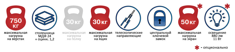 Верстак Profi WT100.WD5/F1.000Артикул: 15817-1Артикул: 15817-2Артикул: 15817-3Артикул: 15817-4Артикул: 15817-5Выберите Экран верстака: двойной экранодинарный экранбез экранаВыберите Освещение верстака: без освещениясветодиодное освещениеОсновной склад: Нет в наличииСклад Новосибирск: Нет в наличииОсновной склад: Нет в наличииСклад Новосибирск: Нет в наличииОсновной склад: Нет в наличииСклад Новосибирск: Нет в наличииОсновной склад: Нет в наличииСклад Новосибирск: Нет в наличииОсновной склад: Нет в наличииСклад Новосибирск: Нет в наличииТовар с выбранным набором характеристик недоступен для покупки 34 270 Р 25 916,80 РЭкономия: 8 353,20 Р Верстак Profi WT100.WD5/F1.000 теперь в вашей корзине покупок ОписаниеХарактеристикиОтзывыДокументацияДоставкаОплатаОписаниеВерстак Profi WT100.WD5/F1.000 Верстаки серии Profi W предназначены для удобной организации рабочего места на производстве, в учебных заведениях, мастерских и гаражах. Нажмите, чтобы увеличить картинку Столешница верстака изготовлена из МДФ толщиной 24 мм, покрытой оцинкованным листом металла толщиной 1,2 мм. Тумба WD-5 состоит из пяти выдвижных ящиков (три малых и два больших), оборудованных телескопическими направляющими и центральным ключевым замком Практик. Нагрузка на ящик в тумбе 30 кг. Полезные габариты ящиков (ВхШхГ): малый - 100х380х600 мм; большой - 190х380х600 мм. Верстак окрашен порошковой краской, способной выдерживать длительную температурную и механическую нагрузку. Опция для верстака: экран с толщиной металла 1,2 мм, квадратной перфорацией 10х10 мм, шагом 38 мм. Нагрузка на экран 50 кг. Опция для экрана: светодиодное освещение с мощностью 11 Вт, световым потоком 880 лм, цветовой температурой 4000 К. Верстак поставляется в разобранном виде. Нажмите, чтобы увеличить картинку Базовая комплектация: Столешница WT-100 – 1 шт. Опора PROFI WF-1 – 1 шт. Тумба WD-5 - 1 шт. Дополнительные опции: Комплект косынок для крепления экранов WS – 1 шт. Комплект освещения W – 1 шт. Кронштейн крепления двух экранов WS (2 шт.) – 1 шт. (если нет освещения) Экран WS-100 (без косынок) – 1 шт. (количество зависит от выбранной модели) Дополнительные аксессуары на экран для инструментов: Помогают удобно организовать рабочее место Нажмите на картинку, чтобы посмотреть все дополнительные аксессуары на экранХарактеристики Макс. нагрузка на верстак, кг750 Макс. нагрузка на ящик30 кг Высота рабочей поверхности, мм870 Ширина столешницы, мм1000 Глубина столешницы, мм700 Тумба 1WD-5 с пятью ящиками Тумба 2отсутствует Кол-во ящиков5 Вес63 кг Гарантия1 год ПроизводительПРОМЕТ (Россия) Отзывы посетителей(0)Оставьте отзыв об этом товаре первым!ДокументацияДоставкаТранспортировка товара с Основного склада до адреса в Барнауле или ПВЗ (пункта выдачи заказов) осуществляется в течение 2-9 рабочих дней после оформления заказа и его оплаты. Варианты доставки: Доставка до адреса Самовывоз из ПВЗ (пункта выдачи заказов) Стоимость транспортировки зависит от заказа (объем, вес) — её можно уточнить у менеджера по тел.: Порядок получения заказаПри получении заказа рекомендуется распаковать товар и сверить с заказом. После получения и проверки заказа необходимо ознакомиться с документами и подписать их.После подписания акта приёма-передачи претензии по комплектации не принимаются. Доставка по всей РоссииМы можем отправить товар в любой город России транспортными компаниями. Склады расположены в 34 городах ст